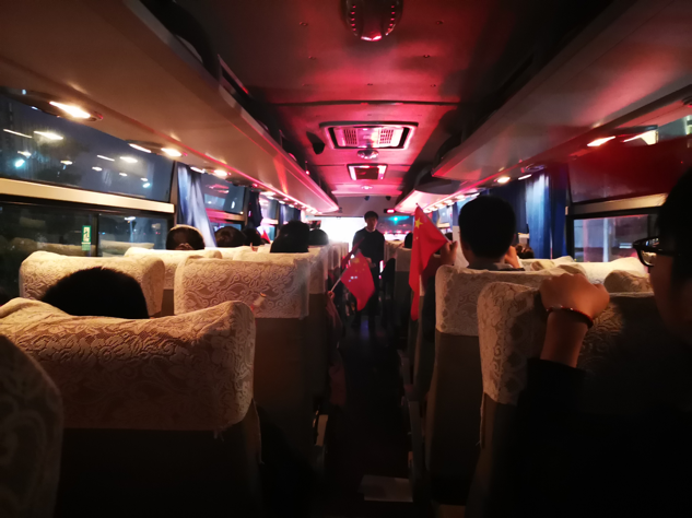 此次放映的影片是正在上映的爱国巨作《我和我的祖国》。下午六点整,新校区参与活动的同学们准时坐上了开往光谷的大巴车。在开往光谷市区的这段时间里,同学们齐唱爱国歌曲,爱国的热情与欢乐的气氛填满了整个巴士。