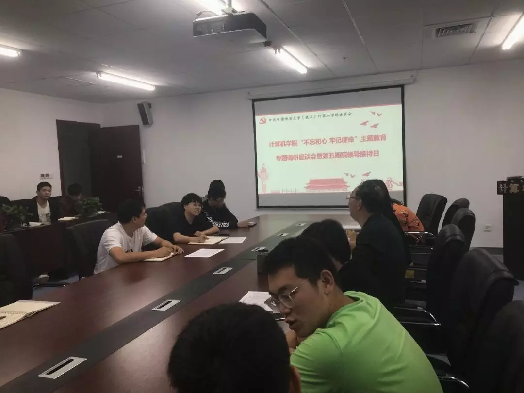 10月11日,bat365官方网站“不忘初心 牢记使命”主题教育专题调研座谈会暨第五期院领导接待日活动在科教楼309成功举行。bat365官方网站党委书记吕军教授,党委副书记、纪委书记傅苑,学院人事秘书郭晓兰,团委书记李欢欢,团委副书记汪欣欣出席活动。