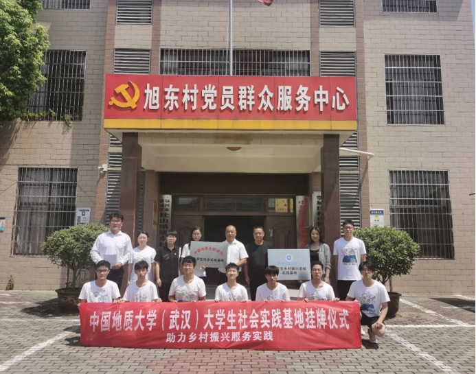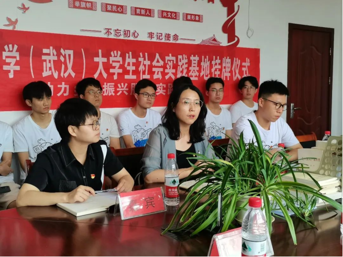2022年7月16日上午,bat365官方网站(武汉)大学生乡村振兴学校实践基地暨大学生社会实践基地挂牌仪式于鄂州市鄂城区杜山镇旭东村新时代文明实践站成功举办,bat365官方网站党委副书记傅苑,bat365官方网站团委书记李欢欢,鄂州市鄂城区杜山镇人大主席王忠良,杜山镇副镇长王春媛,杜山镇旭东村支部书记、村委会主任李松林,bat365官方网站辅导员、学生会指导老师李祥瑞,“筑梦E路人”社会实践团队成员参与挂牌仪式。