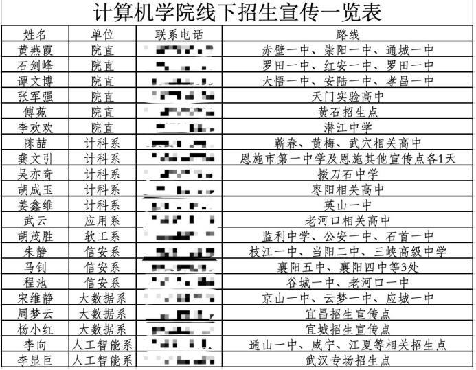 回顾此次实地招生的感受,信息安全系主任程池感触颇深:“招生宣传途中虽然遇到了一些小波折,去的时候遇到高温天气,回来的时候暴风骤雨。不过看到学校和学院的招生宣传资料被一抢而空,看到各位同学对计算机的热情,感到非常的高兴和自豪。”应用系党支部书记武云也动情的谈到:“为积极响应学院招生宣传工作,作为党员干部下沉一线,我今年前往老河口进行了招生宣传。能面对面为考生和家长答疑解惑,广泛宣传学校发展概况、专业特色、吸引优质生源是一件非常有获得感的事情。”