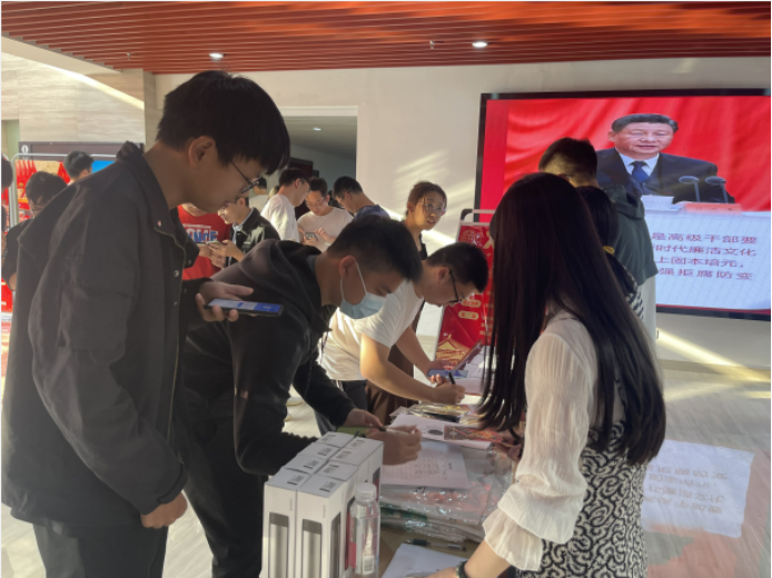 学校“样板党支部”bat365官方网站博士生党组织部牵头负责的“党风廉政知识竞答”活动,通过现场扫码扫码答题赢取学院文创产品的形式,引导广大师生学习党风廉政建设理论知识、了解党风廉政建设的重要意义,增强师生爱院荣院教育。活动吸引了近300名师生参与互动答题,共有23名师生获得满分成绩。
