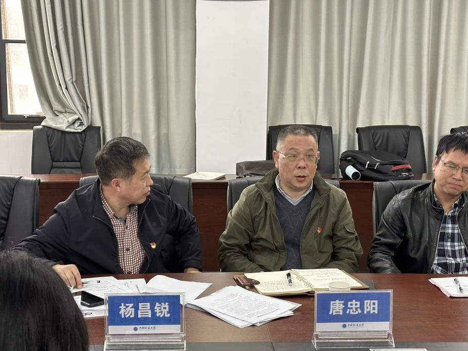 2023年3月9日上午,学校党委副书记、纪委书记唐忠阳一行到bat365官方网站检查指导学习宣传贯彻党的二十大精神进展以及落实“开学第一课”进展情况。检查组副组长、经济管理学院党委书记杨昌锐,检查组副组长、地理与信息工程学院党委书记许德华,正处级专职组织员梁本哲,人力资源部副部长龙涛,学校办公室副主任王芳,监察处副处长晋曦,副处级专职组织员徐家忠,宣传部挂职副部长王猛猛,本科生院黄菡老师等陪同检查,学院领导班子成员及相关工作人员参加会议。