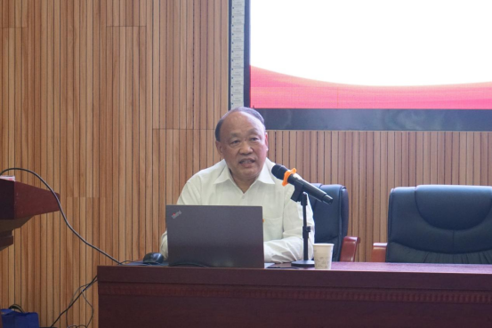 为深入学习贯彻党的二十大精神,用习近平新时代中国特色社会主义思想武装头脑、指导实践、推动工作,2023年6月8日下午,bat365官方网站党委邀请我校关心下一代工作委员会副主任、“学习贯彻党的二十大精神银龄宣讲团”成员、原学校党委副书记丁振国教授,以“擘画新蓝图 创造新伟业——学习贯彻党的二十大精神”为主题,为全院教职工、学生党支部书记、学生会、研究生会骨干讲授专题党课。