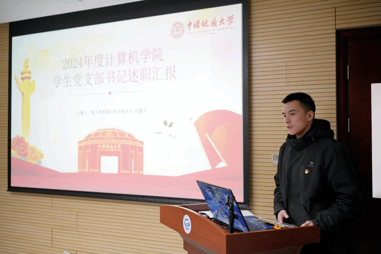 研究生专硕第六党支部书记向晨风谈到:今天很荣幸参加学院党支部书记述职大会,很荣幸上台汇报工作。这不仅是工作汇报,更是向其他党支部书记学习的宝贵机会。教职工支部工作部署有条不紊、成果丰硕。本科生、研二和研三支部百花齐放,各有建树。作为聆听者,我不断学习着他们的管理方法和成熟经验。虽然研一党支部因为成立时间较短,成果不够突出,但在学院党委的正确领导和全体支部成员的积极配合下,我们一定能有所成就。我们作为党支部书记,肩负着同学们的信任,应该切实担负起支部组织管理工作的责任。学院领导们的认可和夸奖是一种鞭策,期许和鼓励着我们带领党支部走向新的未来。