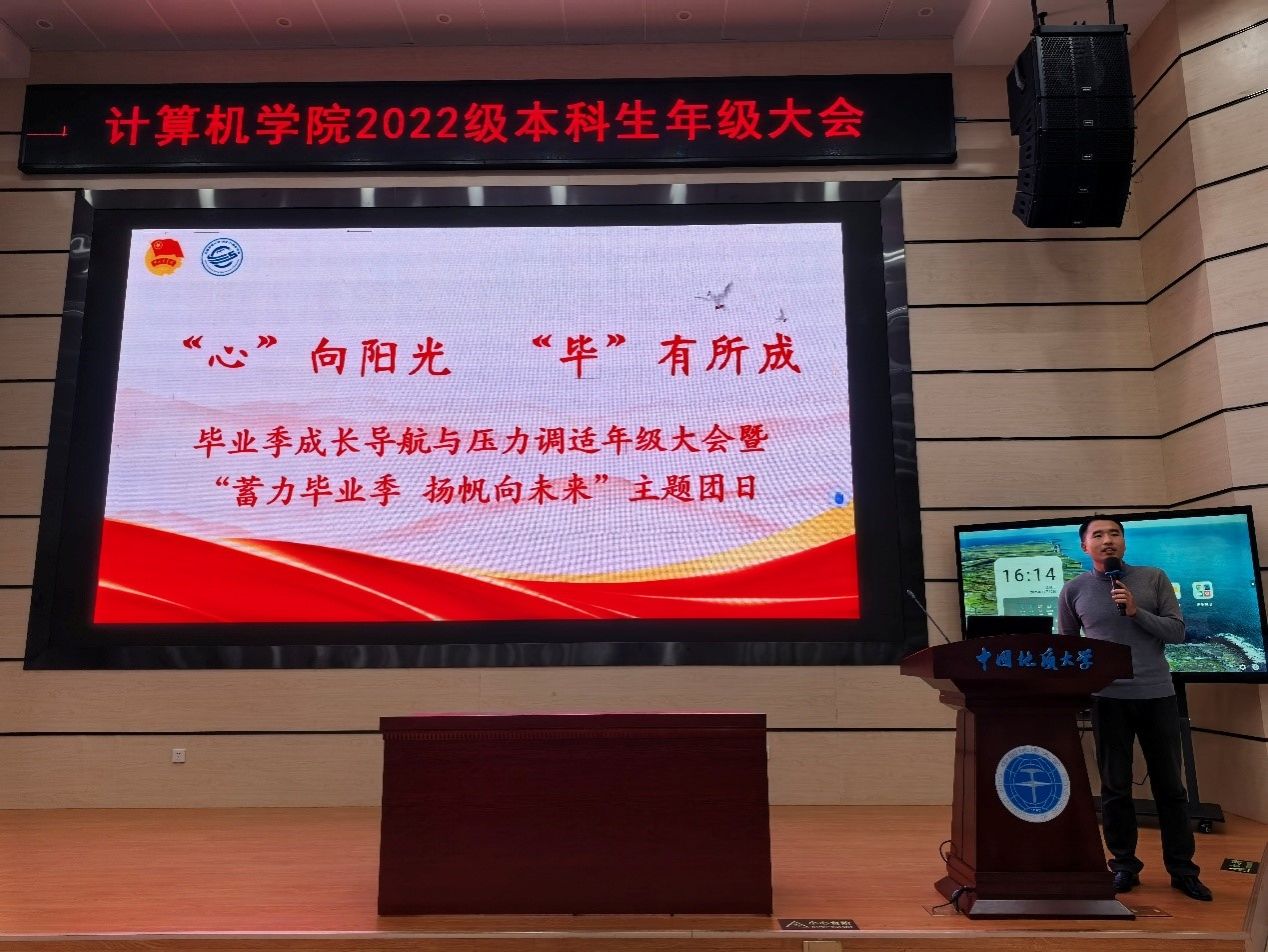 为引导大四学子树立积极健康心态,科学调整及坚定未来发展路径,11月13日下午,bat3652022级本科生“‘心’向阳光 ‘毕’有所成”毕业季成长导航与压力调适年级大会暨“蓄力毕业季 扬帆向未来”主题团日活动在未来城校区公教一208教室顺利举行。学生心理健康教育中心王煜、学院教务科李婷、辅导员王太茂及2022级在校本科生参加,会议由王太茂主持。