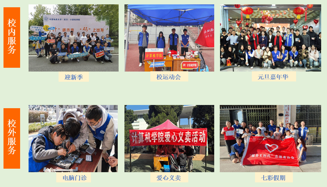 在2024至2025年度,协会组织开展志愿活动超30次,累计志愿时长达2500小时,志愿者超1000人次。协会在校内搭建育人平台,组建“计科E课堂”课程帮扶志愿者团队,开展17次答疑活动,辐射学生1000余人次;协助举办“金山杯”华中地区高校第十八届程序设计邀请赛暨bat365官方网站第二十届程序设计大赛等大型活动。在校外建立计算机普惠性科普基地,开发“人工智能启蒙”“编程思维养成”等主题课程模块、创新暑期教育托管模式、开展电脑义诊等,在跨校合作中,单次活动最高联动志愿者150人;在社区服务中,累计服务孤寡老人28户、青少年120余名,传递志愿服务的温暖与力量。