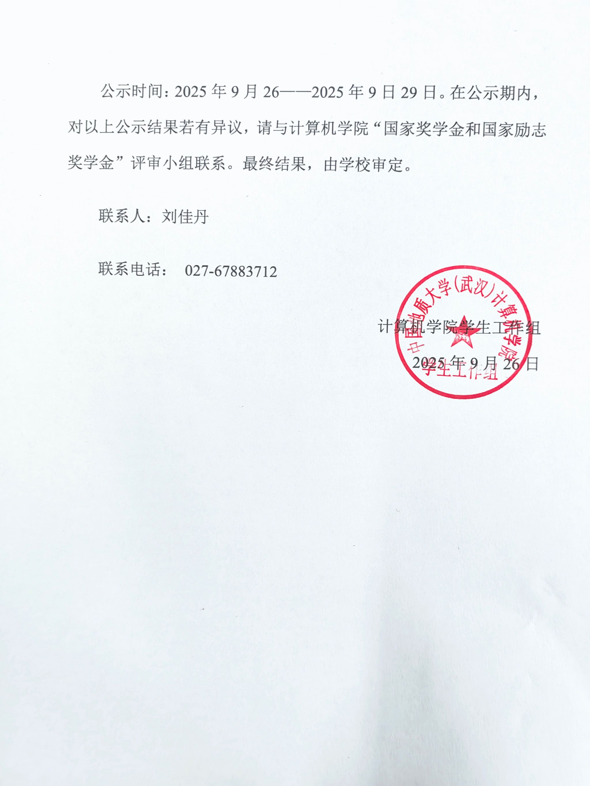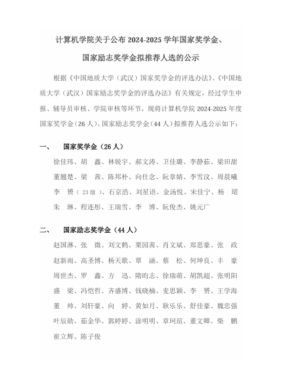 bat365官方网站关于公布2024-2025学年国家奖学金、国家励志奖学金拟推荐人选的公示