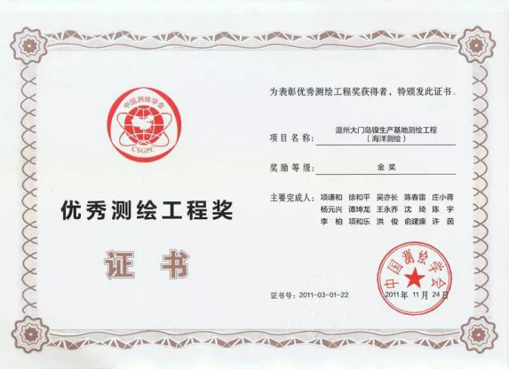 在浙江省地质勘查局测绘大队(浙南测绘工程处、海洋测绘工程处)工作期间,他参与负责的测绘工程大项目达几十项,其中“温州大门岛镍生产基地测绘工程(海洋测绘)”项目荣获全国优秀测绘工程奖金奖,“温州市龙湾区农村集体土地所有权确权登记发证项目”荣获浙江省优秀测绘与地理信息工程奖银奖,“温州市瓯江口新区地面沉降监测与滩涂工程测量”荣获浙江省优秀测绘与地理信息工程奖金奖 、“浙江省(舟山群岛、三门湾、乐清湾)海洋测绘水下地形测量和深水岸线调查”荣获中国测绘学会优秀测绘工程金奖。