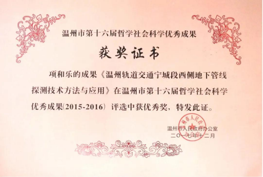 在2013年以来,项和乐主持完成了《温州第三方复核测量项目在温州市域铁路S1线一期工程实例探讨》、《温州轨道交通宁城段西侧地下管线探测技术方法与应用》、《温州市域铁路S1线一期工程土地勘测定界项目》的研究和编写。采用了全国示范性工程市域铁路S1线的变形监测理论和测绘学理论为基础,以生产安全思想为指导,应用测绘工作和地下探测的新技术和新方法,对市域铁路S1线近二十年来在沿线地形、地貌、地质、水利、管线、地下空简等方面所取得的进展和观点进行系统的总结,首次运用沉降监测和偏移观测相结合理念对市域铁路S1线工程建设演化规律进行研究,构建了轨道交通变形观测的基本概念和方法,为轨道交通变形观测的生产应用提供了理论依据,为市域铁路S1线工程建设安全生产、消除隐患工作提供了重要的理论支撑。对地下管线的内部结构进行解剖,划分为含弱电管线、水利管线、通信管线、排污管线、军用管线、能源管线等地下管线单元,形成了温州轨道交通宁城段西侧地下管线探测研究的新方法。建立了轨道交通测量标准数据和规范,为轨道交通测量行业性标准规范编制研究提供了可靠的原始数据。