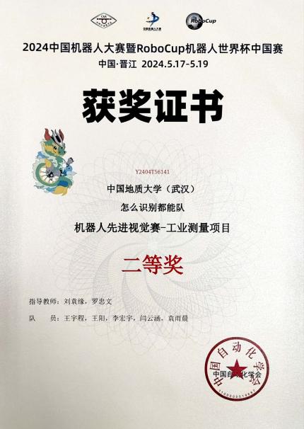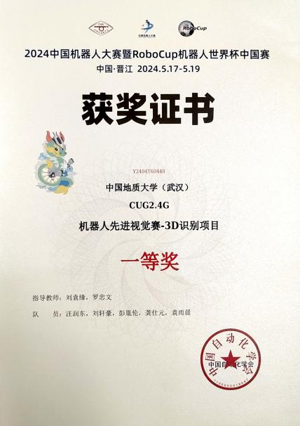 “2024年中国机器人大赛暨RoboCup机器人世界杯中国赛”在福建晋江国际会展中心落下帷幕。bat365刘袁缘老师、罗忠文老师指导两支学生团队参加先进视觉赛项。经过激烈角逐,由汪润东、刘轩豪、彭胤伦、龚仕元、袁雨晨组成的CUG2.4G队获先进视觉赛3D识别项目一等奖,由王宇程、王阳、李宏宇、闫云涵、袁雨晨组成的怎么识别都能队获得先进视觉赛工业测量项目二等奖,这是bat365连续在该赛事斩金夺银。两支团队回忆比赛历程,将奋斗故事与成长收获分享给大家。