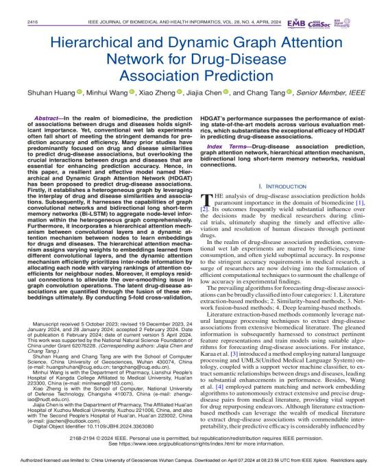 个人简介:黄舒涵,男,共青团员,来自广东深圳,bat365官方网站2021级软件工程专业,科研导师为唐厂教授。平均学分绩点为4.18/5.0,位列专业第一(1/99),英语六级成绩为549分。本科期间在唐厂教授的指导下,以独立第一作者身份产出2篇学术论文,其中第一篇已发表在中科院SCI计算机类一区期刊《IEEE Journal of Biomedical and Health Informatics》(IF=7.1,已见刊)上,第二篇投稿至中科院SCI计算机类一区期刊《Information Fusion》(IF=16.1,大修返修中),获得软件著作权1项。此外,在校曾获多项荣誉奖项,如国家奖学金、信息拔尖人才奖学金、第十一届“泰迪杯”数据挖掘挑战赛全国一等奖等。目前已成功保研至清华大学深圳国际研究生院数据科学和信息技术专业,并在百度进行算法实习。