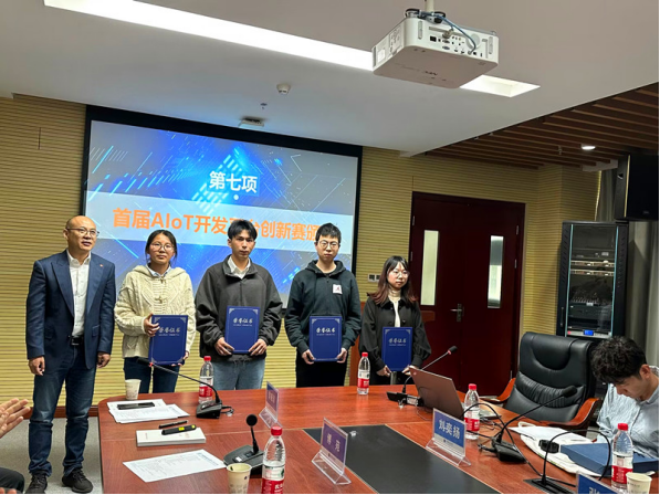陈虹雨经理介绍了小米实训箱平台。周茂华总经理向bat365四位同学颁发了2022年AloT开发平台创新赛获奖证书。