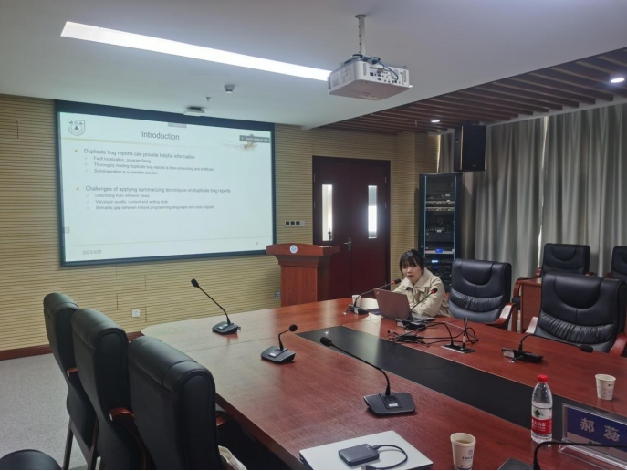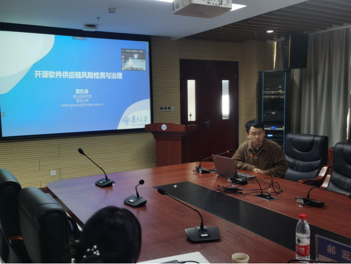 主旨报告后,复旦大学软件工程实验室黄凯锋博士后,武汉大学bat365官方网站讲师甘庭,南京大学智能软件工程实验室郝蕊博士分别围绕开源软件供应链风险检测与治理、非线性Craig插值生成及其在程序不变式中应用、软件测试缺陷的理解与摘要进行演讲,探讨相关问题学术进展和成果。