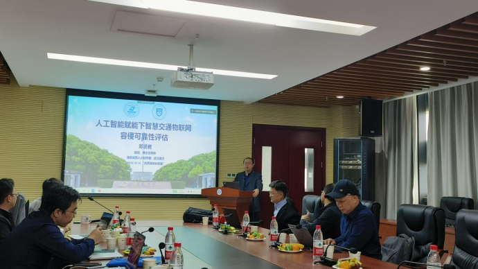 然后是来自华中科技大学的邓贤君教授作题为人工智能赋能下智慧交通物联网容侵可靠性评估理论与方法的主题报告,介绍了智慧交通物联网的社会需求、核心技术、行业应用和发展前景,分析了智慧交通物联网的三大痛点,讲解了智慧交通物联网可靠性关键技术,并展示了研究成果及应用示范。