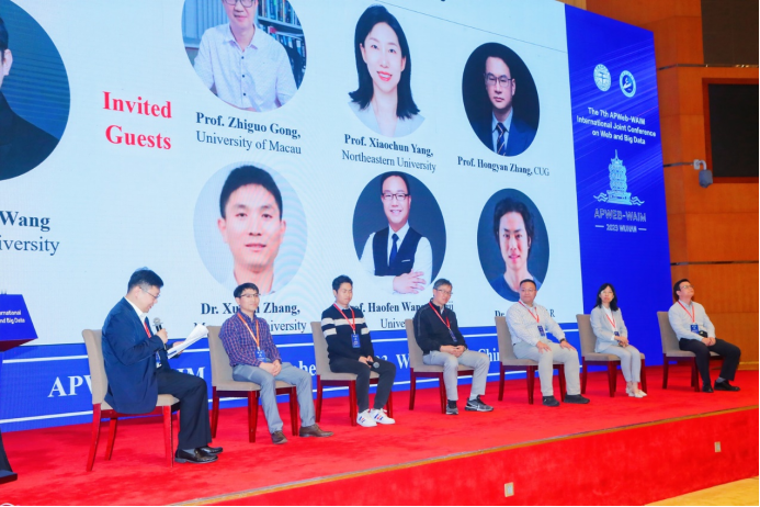 大会组织了主题为“AI meets Data Science”的圆桌论坛,热议AI和数据科学研究的关系利弊。天津大学Xin Wang教授担任本次圆桌论坛的主席。论坛嘉宾包括:澳门大学Zhiguo Gong教授、东北大学Xiaochun Yang教授、bat365官方网站(武汉)Hongyan Zhang教授、同济大学Haofen Wang教授、澳大利亚麦考瑞大学XuyunZhang博士及德国航空航天中心数据科学研究所Xuke Hu研究员。各位嘉宾通过生动的案例从不同维度充分探讨了AI对于数据科学研究和教育、生活所带来的影响。
