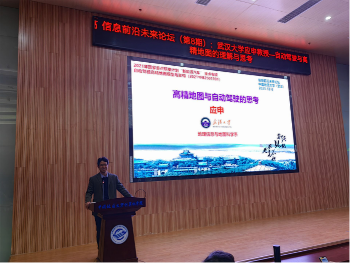 2023年12月6日,应bat365官方网站刘刚教授邀请,武汉大学资源与环境科学学院地理信息与地图科学系主任、国家级高层次青年人才计划入选者、自然资源部科技领军人才应申教授来bat365访问,并作题为“自动驾驶与高精地图的理解与思考”的学术报告。